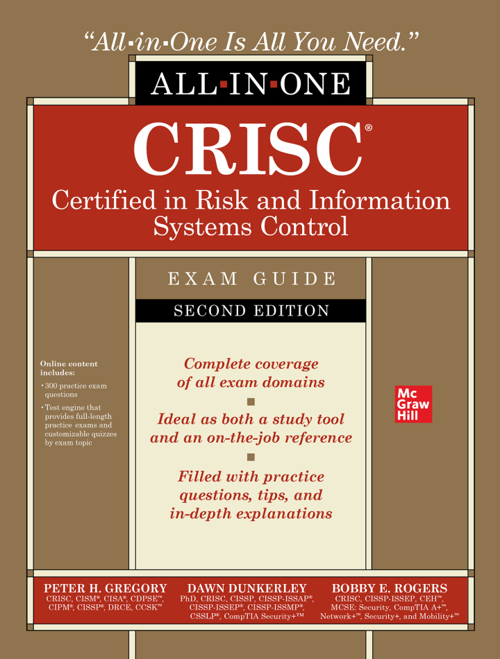 Unlock your potential in the field of risk management with the CRISC Certified in Risk and Information Systems Control All-in-One Exam Guide, 2nd Edition by Peter H. Gregory, Dawn Dunkerley, and Bobby E. Rogers. This comprehensive resource is designed for professionals seeking to master the intricacies of risk management and information systems control. Featuring in-depth coverage of key concepts, real-world scenarios, and practice questions that mirror the exam format, this guide equips you with the knowledge and confidence needed to excel. Elevate your career and achieve certification with this essential tool for success in the fast-evolving IT landscape.